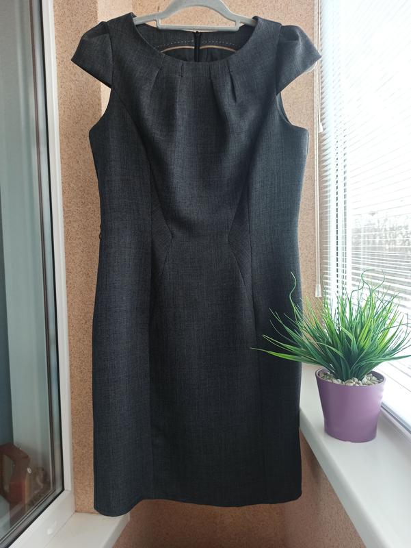 Прямое темно-серое платье / платье / сарафан миди по фигуре с оригинальной спинкой