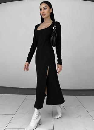 Приталена сукня облягаючого крою з високими розрізами з боків. Універсальний варіант для будь-якого типу фігури розрізи з боків ефектно витягують фігуру. Таке плаття відмінно підійти для щоденного використання і для романтичної вечері. арт.J000004 Тканина: турецький трикотаж рубчик-пеньє Склад: 90% бавовна, 8% інші волокна, 2% еластан Колір: чорний Розмір: XS, S, M, L, XL, XXL, Параметри моделі на фото: Зріст: 170 см, ОГ: 86 см, ОТ: 64 см, ОС: 93 см. На фото представлена модель розмір S (42/44). Фактичні виміри по виробу: ОГ: XS-70; S-74; M-78; L-82; XL-86; XXL-90; ОТ: XS-58; S-62; M-66; L-70; XL-74; XXL-78; ОС: XS-82; S-86; M-90; L-94; XL-98; XXL-102; Ширина рукава зверху: XS-13,3; S-14; M-14,7; L-15,4; XL-16,3; XXL-17; Довжина виробу зі спинки: XS-125,5; S-126; M-126; L-126,5; XL-126,5; XXL-127; Довжина рукава: XS-60, 5; S-61; M-61,5; L-62; XL-62,5; XXL-63; Довжина рукава за внутрішнім швом: XS-48; S-48; M-48; L-48; XL-48; XXL-48;