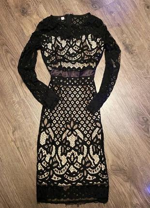 Ажурное черное платье Размер S(42-44) Идеально подойдет на рост до 180 см Длина по спине -105 см Длина рукава -67-68 см Состояние идеальное Надето один раз