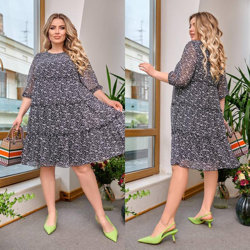 🔥🔥🔥Платье. м.1171. Размеры 50-52,54-56,58-60,62-64,66-68. Ткань,шифон, низ трикотаж подкладка. Цена 990 гр.минова Орієнтовні заміри готового виробу: 54-56 р-р: довжина сукні 104см, обхват рукава 42 см, довжина рукава від горловини 26см, ОГ - 112см, ОТ - 122см, ОС - 162см. 58-60 р-р: довжина сукні 105см, обхват рукава 44 см, довжина рукава від горловини 28см, ОГ - 122см, ОТ - 130см, ОС - 174см. 62-64 р-р: довжина сукні 108см, обхват рукава 48 см, довжина рукава від горловини 29см, ОГ - 130см, ОТ - 138см, ОС - 182см. 66-68 р-р: довжина сукні 111см, обхват рукава 52 см, довжина рукава від горловини 31см, ОГ - 138см, ОТ - 144см, ОС - 198см.