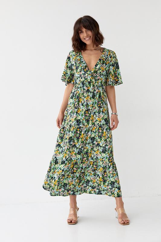 Длинное платье с оборкой и цветочным принтом - салатовый цвет, m (есть размеры)