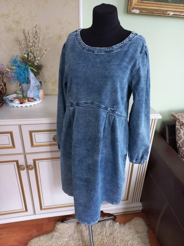 плаття з трикотажу, кольору " виварений джинс " , великого розміру, стан нової речі, з боку блискавка,ПОГ 55, ПОС 65, тягнеться, довжина 98, довжина рукава 60, крій плаття маскує зайві кг.