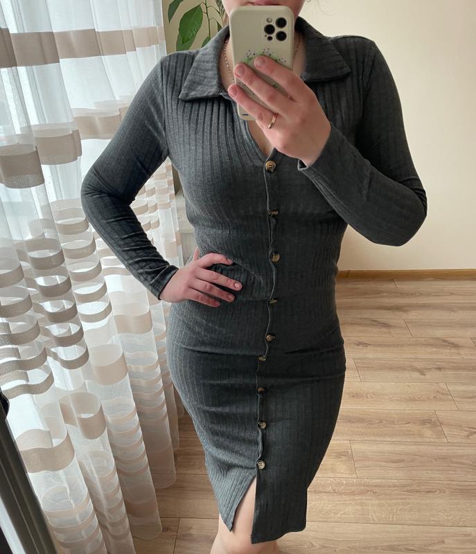 Жіноча міді сукня з комірцем на ґудзиках у розмірі Л. Дуже якісний матеріал.
