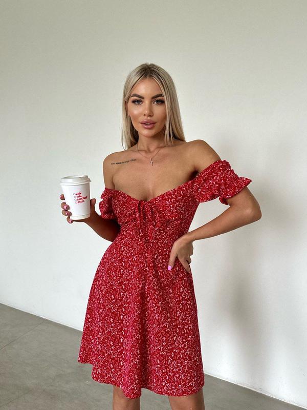 Модель 582/31 Жіноча сукня Розмірний ряд S,M,L,XL Тканина софт ( приємний до тіла) Кольори молоко, червоний,блакитний, чорний дрібна квітка, чорний крупна квітка Сукня застібаєтсья на потайну блискавку , рукава на резиночках Супер якість