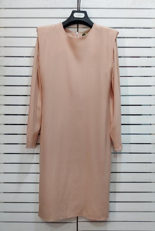 Size : 38 Fr.= 42 It. = S+/M-. 100% шовк. Під руками 42, талія 40, стегна 45, довжина виробу 90, рукав 53. Блискавка на спині ( замок YKK ). Бальманове плече з підплічником обігране в стилі романтичної класики Lanvin. Колір — пудра.