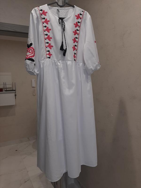 Продаю гарненьке плаття Вдягала 2 рази Після родів сильно схудла тому і ппродаю Довжина виробу 113см Плечі 40см