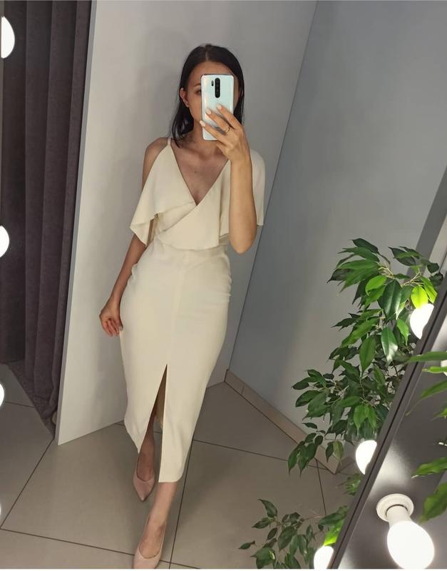 Силуетна, витончена та ефектна сукня міді, що підкорила немало сердець. Ніжний колір, силует що бездоганно підкреслює фігуру. Потайна застібка блискавко в боковому шві. Родзинка цієї сукні - манливий розріз попереду. Матеріал: поліестер. Розмір: S, M, L, XL.