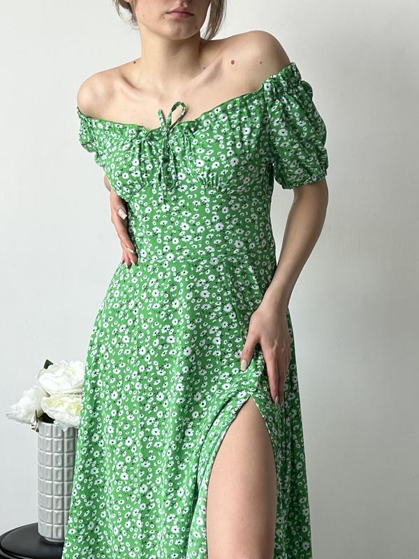 ‼️У наявності ‼️ Хіт продажів ❤️🔥 💙 СУКНЯ 💚 Арт. 413 Тканина: Супер-софт Колір зелений Розміри: S, M, L Ціна : 600 грн Опис: Трендова сукня з розрізом на нозі. Довжина моделі міді з відкритими плечима і ліхтарики рукавами.