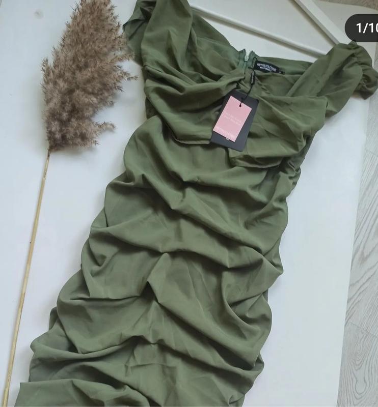 Неймовірна сукня від Prettylittlething в оливковому кольорі підходить навіть вагітним🌿в каруселі більше фото ▪️розмір 10 (м) ▪️Тканина шифон ▪️Нова з бірками