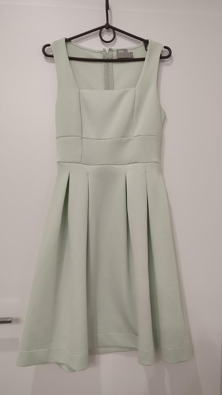 М'ятного кольору, нижче коліна, чудово сидить по фігурі довжина 95 півобхват грудей 40 півобхват талії 34