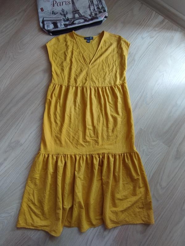 Гірчичне плаття сарафан 38-40 в ідеальному стані, в складі тканини віскоза і подіамід, що робить її дуже приємною до тіла, прохолодна і падаюча, довжина міді