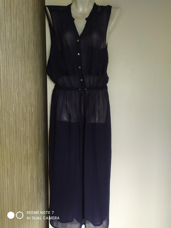 прозора сукня , легка в гарному стані. по талії на резинці, с боковими розрізами. є нюанси на фото 6,7. довжина 125 пог 50-52 пот 30-52(резинка тягнеться) по стегнах 52-56.