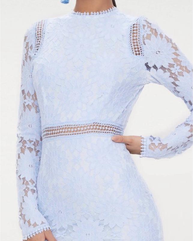 Мереживна, блакитна сукня. Стан новий з біркою. Розмір - 42. Склад: 50% полігамід, 26% бавовна, 24% віскоза. Підкладка: 100% поліестер. Заміри: Довжина - 118 см Ширина - 48 см Рукав - 72 см