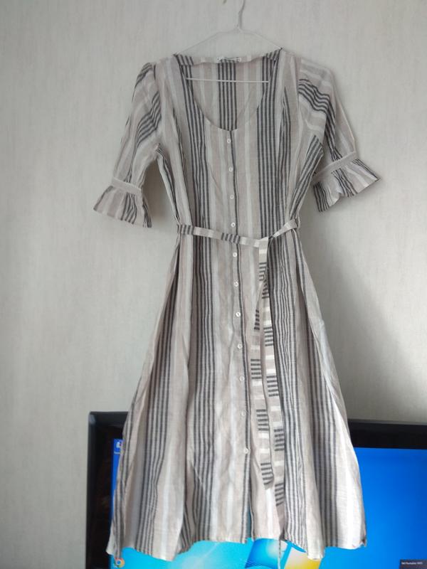 Плаття під пояс, з ґудзиками по переду. Склад: бавовна-84%,поліестер -16 % Заміри: плечі -36 Пог-49 Пот-45 Поясок-180 Довжина-105 Рукав-34