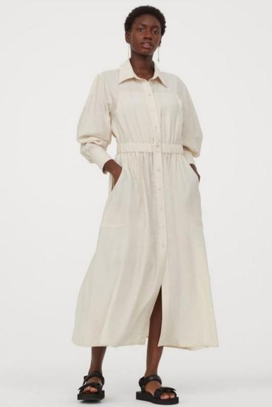 Довжина 130 см Полуобъем талії 30 см, гумка тягнеться плюс-мінус до 40 см В грудях вільно десь 45 см Ширина плечей 45 см Полуобъем стегон 72 см Довжина рукава 41 см Склад: 82% віскоза 18% поліамід По бірці розмір 34, але добре сяде і на більший розмір.