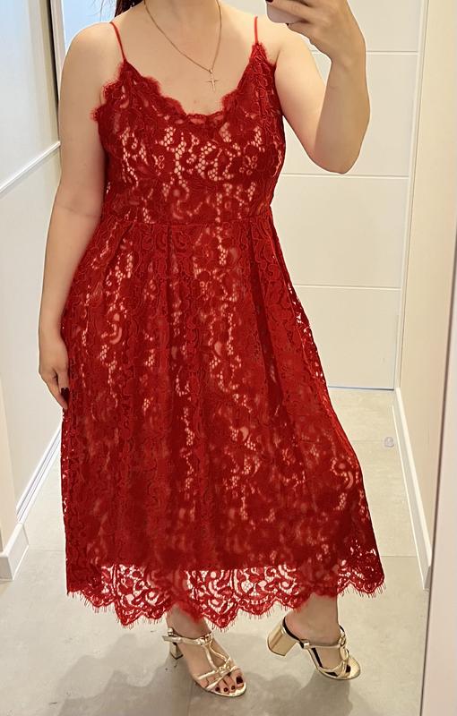 Новое кружевное платье H&M насыщенного красного цвета. На очень приятной мягкой подкладке. Размер американский 10, М.