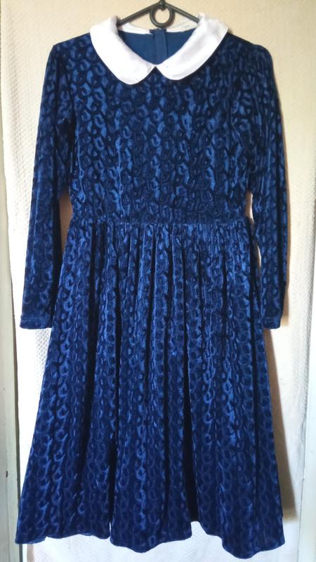 Дуже гарна тканина, з візерунком. Пишна спідничка Довжина сукні 92 Рукав 50 Ширина плечей 36 Напівобхват талії 34 Від плеча до талії 32 Пахви півобхват 40