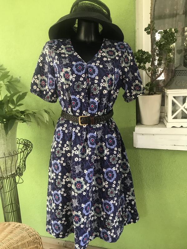 Лёгкое ситцевое платье свободного кроя. Два кармана в боковых швах. Состав:хлопок-100/. Размер по бирке-М. Замеры: длина-103 см, ПОГ-49 см, ПОБ-56 см.