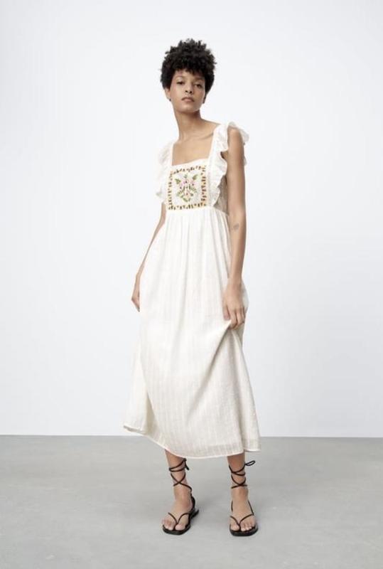 Неймовірне плаття з вишивкою на грудях,зав‘язка на ззаду гарно акцентує спинку.