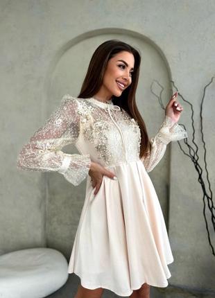 Шикарна мереживна сукня прикрашена сяючими вставками