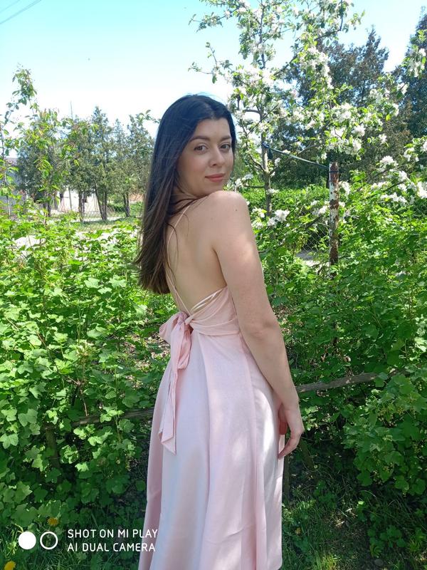 Нова сукня Zara з натурального льону ніжного запірного кольору довжина міді одягалось тільки для фото розмір М силует півсонце шикарна спинка з зав'язка на бант спереду запах груди не вивалються гарний півзахід