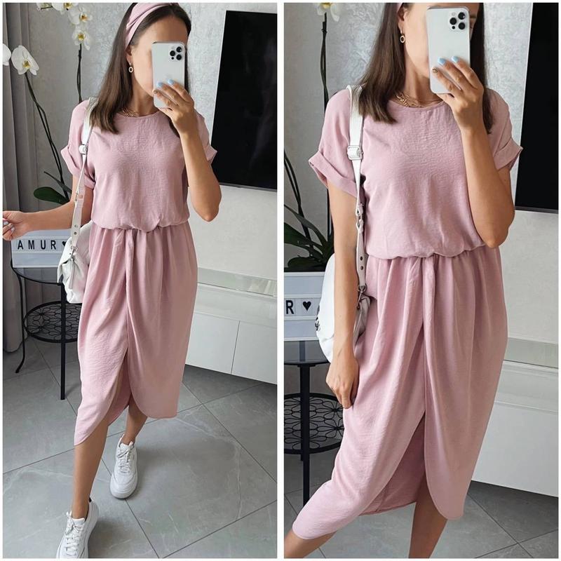 Сукня Модель 1825 Цена 500 грн Размеры 42-46,48-50, 52-54 Ткань американский креп жатка, отличное качество Цвета пудра, темно-синий, оливка и сирень Комфортный крой, асимметричная юбка придает особенность данному платью, выгодно подчеркивает фигуру. Верх свободного кроя, пояс на резинке, дополнительно идет пояс в комплекте амур