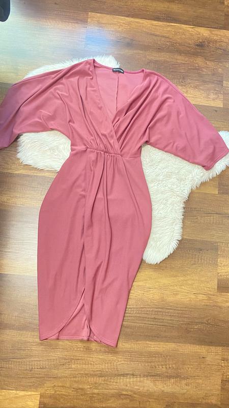 Красивое платье с асимметричным разрезом внизу. Широкие рукава, привлекательная зона декольте, на талии резинка. Это платье не останется без внимания 😻 Цвет как на первом фото, но чуточку темнее.