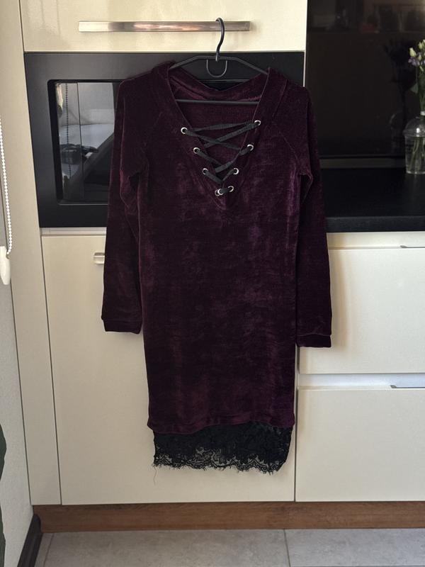 Стильное платье миди размер s-m велюр и кружево бархатное