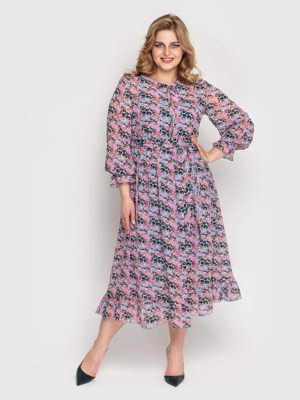 Платье миди, отрезное по талии. Низ рукава на резинке.