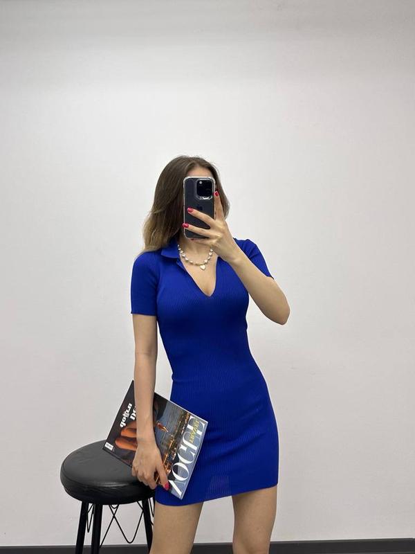 Новинка 0 В количестве в контейнере # 0111 • Производитель Турция с • Фото реал (э • Размер единый 42-48 •• Тканина: рубчик 8% • Цвета: оранжевый' зеленый черный * и электрик Короткое весеннее платье поло в рубчик с глубоким декольте незаменима для этого сезона Ткань очень хорошо тянется, держит форму LOVE Длина 83 см