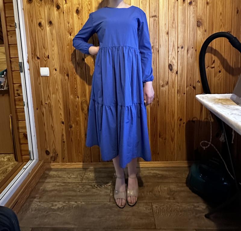Сукня міді, яка скриває будь-які недоліки фігури. Дуже легка та зручна. Дуже насичений колір. Рукав 3/4 Розмір М