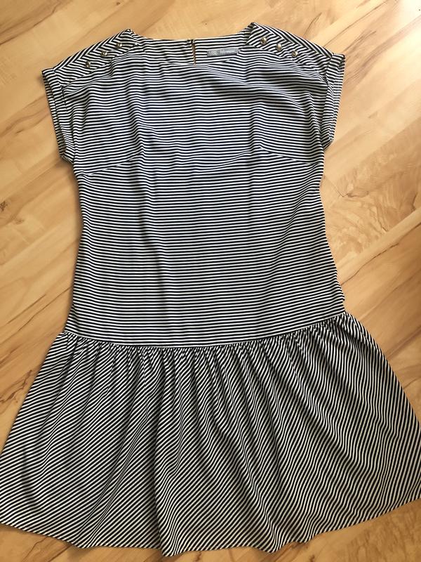 Платье в полосочке, отрезное по бедрам, очень классно смотрится. Ткань мягкая и легкая. Отделка золотыми пуговицами. На размер S-M.