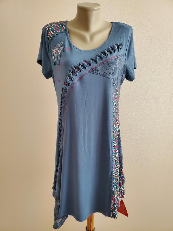 Без следов ношения. Трикотаж мягкий, приятный к телу, тянется. ПОГ 49, ПОТ 46, ПОБ 61, плечи 42, рукав 16, длина по спине 85 см.