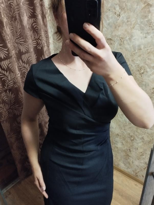 Платье темно синяя, драпировка на талии скрывает дефекты фигуры))) аккуратное декольте, в идеальном состоянии