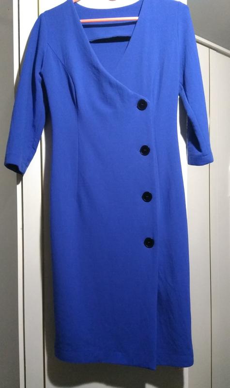 Платье насыщенного синего цвета - шилось под заказ (для конференции). Размер S-XS. Плотная ткань, практически не тянется. Модель "на запах". Параметры: ПОГ (от подмышки до подмышки) - 41см ПОТ - 33 см ПОБ - 41 см ( на ОБ 85-90см) Длинна 95см, плечи (от шовчика) - 36см