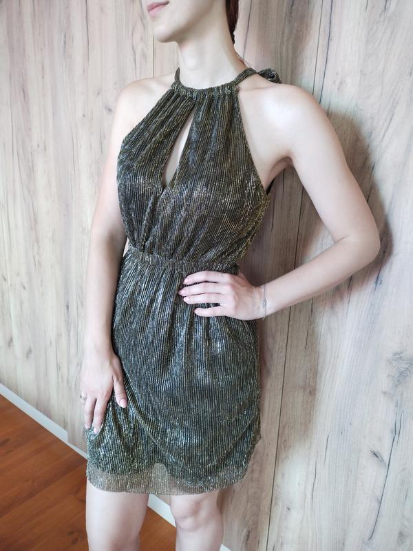 Ніжна золотиста сукня. В реалі вона більш золотава, фото нажаль не передає. Розмір xs. Одягала один раз на свято! Без пошкоджень і затяжок!