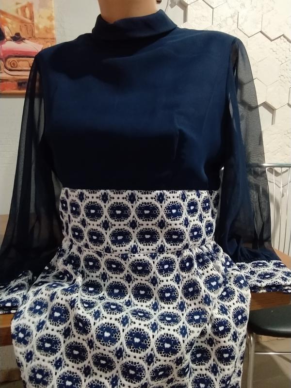 Стильна сукня з красивим орнаментом! Має рукава з сіточки. На спинці застібка. Заміри: довжина- ПО- Плечі-