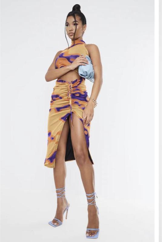 Pretty little thing Розмір вказаний 8 (S) В носці було один раз. Стан нового Материал оранжевого цвета с принтом тай-дай, вырезом и юбкой со сборками. Носите с ремешками на каблуке и простыми аксессуарами, чтобы выглядеть безупречно. Длина 114 см