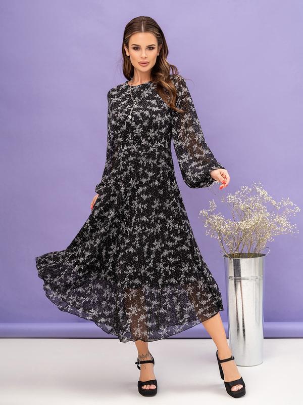 Чорна міді сукня з дрібним квітковим принтом s-xl