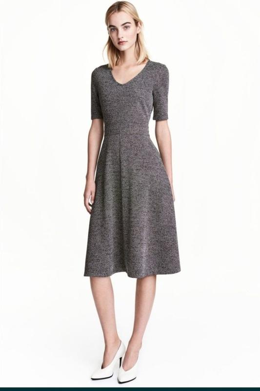 На сукні трикутний виріз і короткі рукава. Відрізна талія і злегка розкльошена спідниця. Потайна блискавка збоку. Без підкладки. Склад: 71% ПОЛІЕСТЕР, 29% ВІСКОЗА Заміри: ПОГ:46 см, ПОТ: 38 см, Довжина рукава:28 см, Довжина: 109 см
