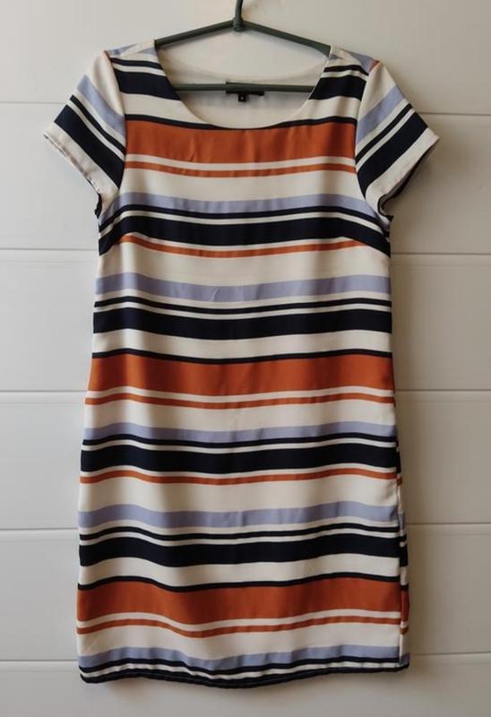 Класне плаття в смужку, рукав 14 тканина не тягнеться довжина 88 напівобхват грудей 43 напівширина в стегнах 48 плечі 37