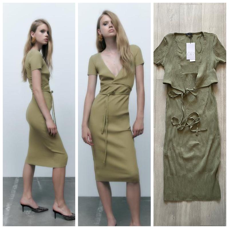 ZARA Сукня міді з V-подібним вирізом і коротким рукавом в рубчик, тягнеться, на грудях повністю на запах на зав'язках, можна регулювати об'єм самостійно в наявності S 94%бавовна 6% еластан