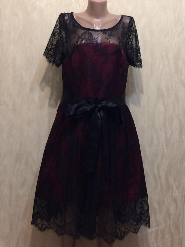 Вечірнє плаття Joanie, нове, без етикетки. Тканина — склад поліестеру. Плаття на бордовій підкладці, на спинці блискавка. Розмір написаний 14 на 12, дивіться заміри НОГ 49 см ПОТ 40см НОС вільний довжина по спинці від лінії плеча 107 см Висилаю Новою поштою, укріпкою. 2831
