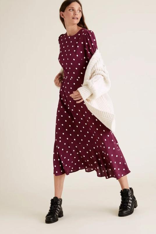 Романтична сукня плаття міді в горошок годе волан бренд m&s