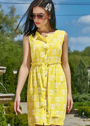 Интернет-магазин ST-Seventeen предлагает удивительно нежные и стильные платья оптом от производителя по доступной цене. Модель с пышной юбкой полуприталенного фасона станет достойным пополнением гардероба в качестве коктейльного, повседневного или гламурного наряда. Платье желтого цвета украшено принтом и сборкой рюши на талии. Асимметричный низ и завышенная талия придают изделию особую изюминку. Дизайнеры летней коллекции Lavanda выбрали для модели круглый вырез и обеспечили конструктивными элементами в виде отрезной планки, нагрудных и талиевых вытачек.Для максимального комфорта, платье пошитое из 100%-й хлопковой ткани штапеля, имеет подъюбник из того же материала. Застегивается молодежное платье на пуговицы.