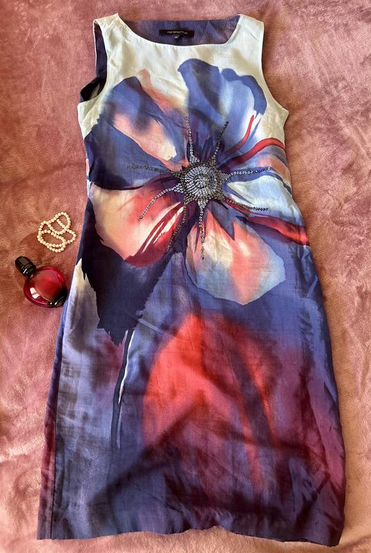 Вишукана літня сукня. Дуже легка і приємна на дотик. Бокова змійка. Недоліків немає. Заміри: Довжина — 100 см ПОГ— 45 см ПОТ — 40 см ПОТ — 45 см
