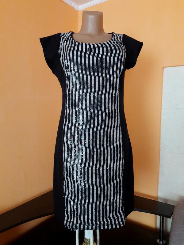 Выбор сумок, обуви,одежды!!! Обновление проходит каждую неделю, так что, подписывайтесь на меня и следите за уведомлениями) Шикарное , нарядное, трикотажное платье с паетками, на спинке молния,размер XL,в отличном состоянии. Замеры ПОГ 50см , ПОТ 45см, длина 86см. Без торга.