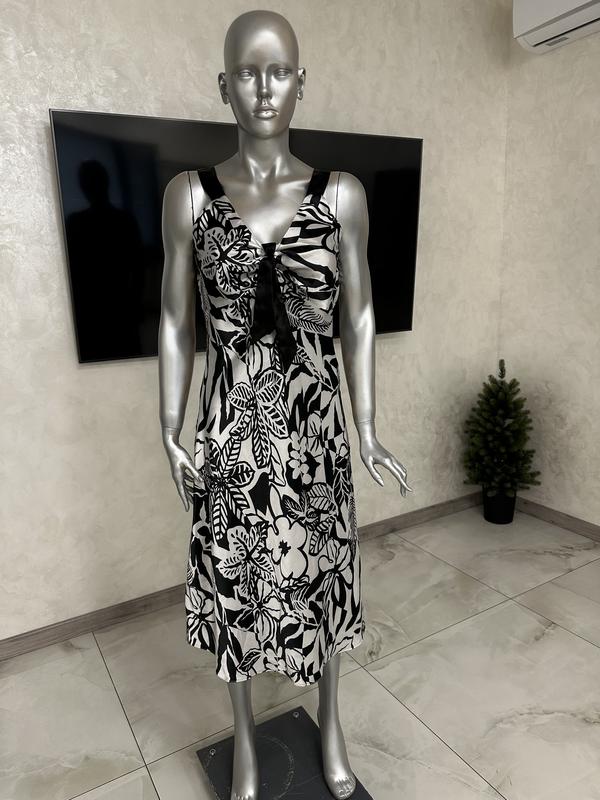 Шикарне плаття всередині на підкладці. Стан загалом гарний, але є дрібні зачіпки в носінні абсолютно не помітно. Розмір вказаний 42, підійде на М-Л. Заміри: довжина 92 см, пог 48 см, піт 44 см, б 58 см