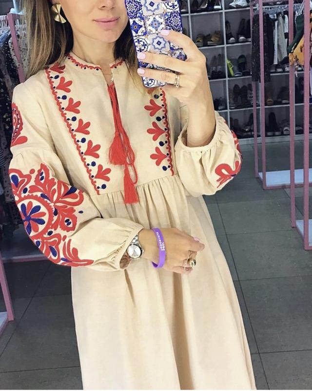 Бежева сукня вишиванка міді