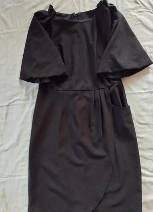 платье черное, классическое, на запах, с карманом, рукава объемные, стильные замеры измерения
